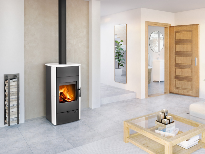 Krbové kachle s teplovodným výmenníkom a dvojitým presklením ESPERA 01, keramika, biela lesklá, Romotop